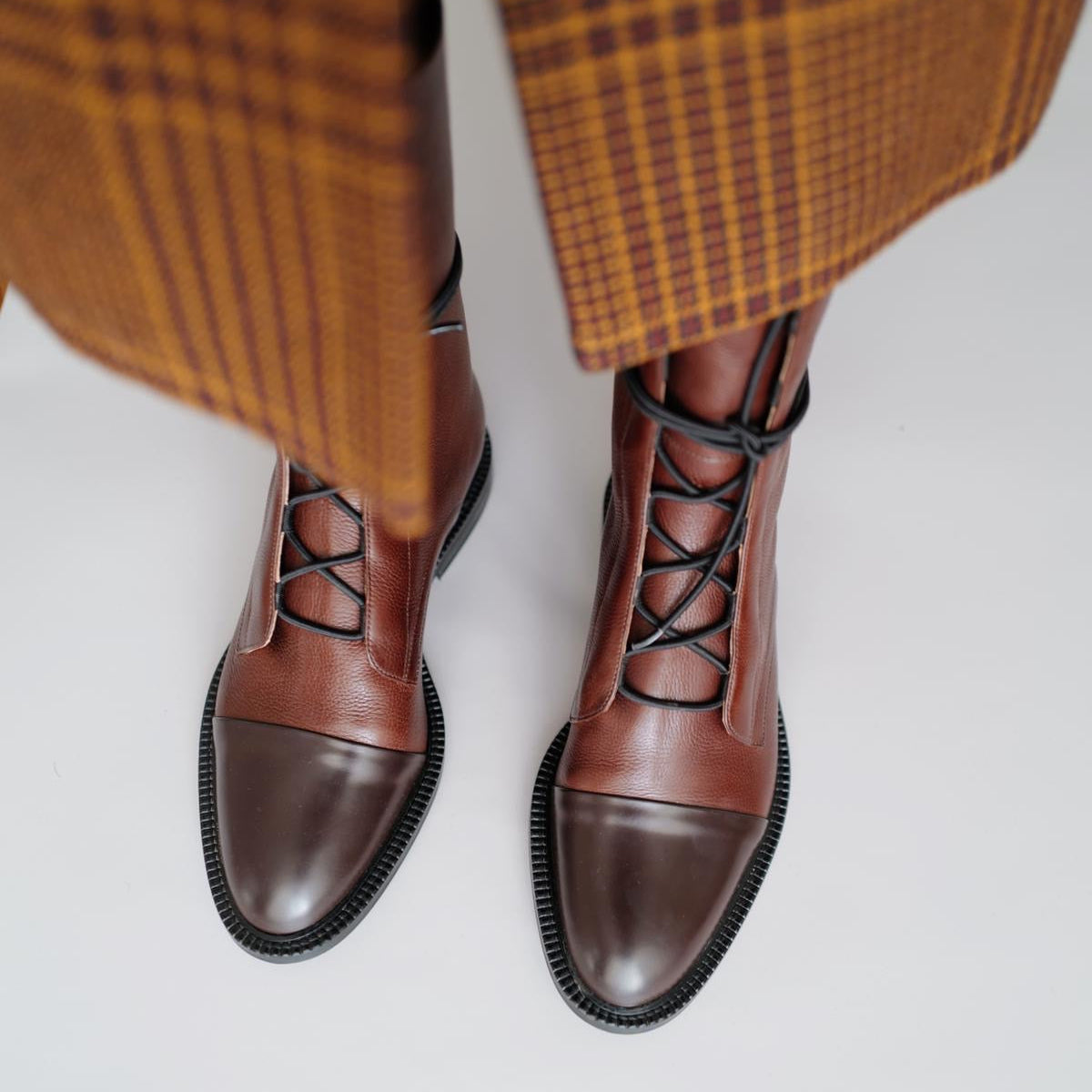 Leur laçage croisé élégant ajoute une touche de caractère et permet un ajustement personnalisé, tandis que le bout légèrement pointu affine la silhouette du pied avec subtilité.