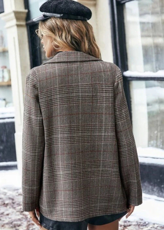 La Veste Blazer à Carreaux Élégance est la pièce idéale pour révéler votre charme naturel, tout en affirmant une attitude confiante et stylée au quotidien.