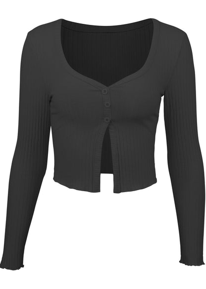 Le Cardigan Court Boutonné Élégance séduit par sa coupe moderne et son style féminin. Son design ajusté met en valeur la silhouette tout en gardant une allure simple et chic.