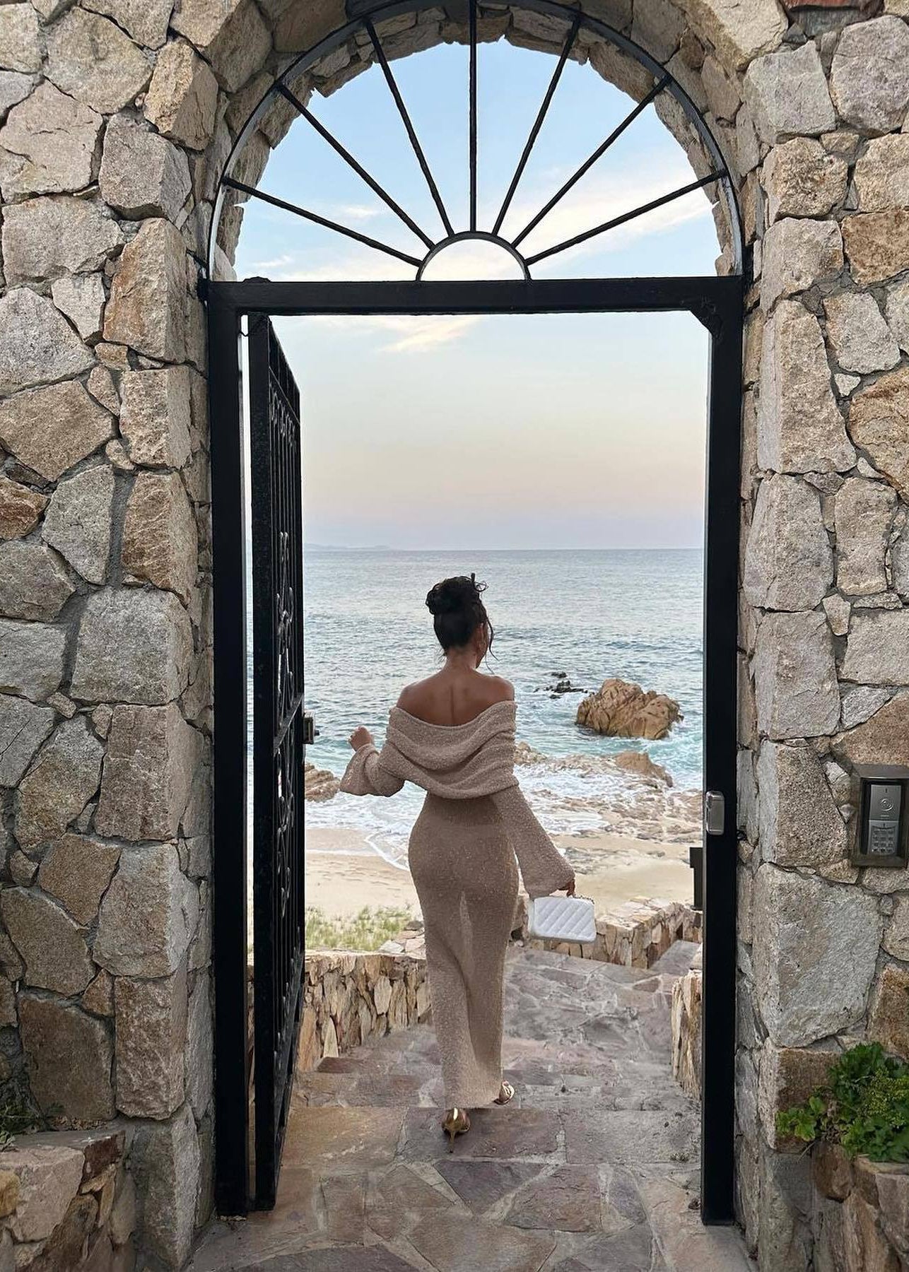 Silhouette près du corps à taille haute qui élance la ligne et souligne les courbes. La longueur maxi apporte une élégance fluide, idéale du dîner au bord de mer à la soirée chic.