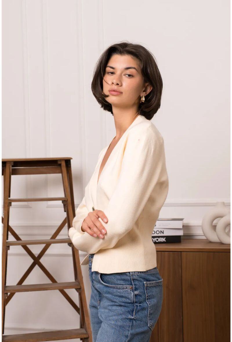 Le Cardigan Élégance incarne la finesse et le style intemporel. Avec son col en V et sa coupe harmonieuse, il apporte une touche chic et soignée à toutes vos tenues, que ce soit au bureau ou lors de vos sorties.