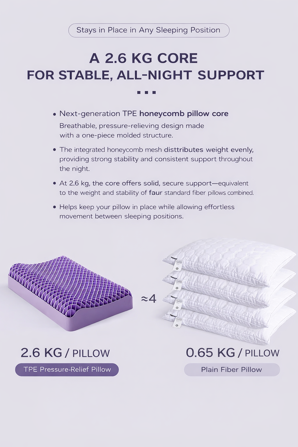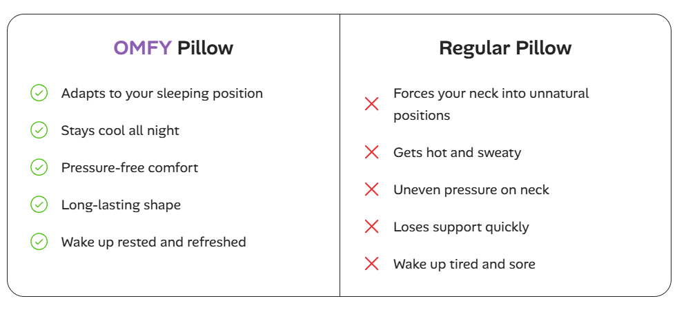 The OMFY pillow is different. Our patented honeycomb structure contains 1,247 individual support points that adapt to your exact cervical curve - whether you're a side sleeper, back sleeper, or switch positions throughout the night.