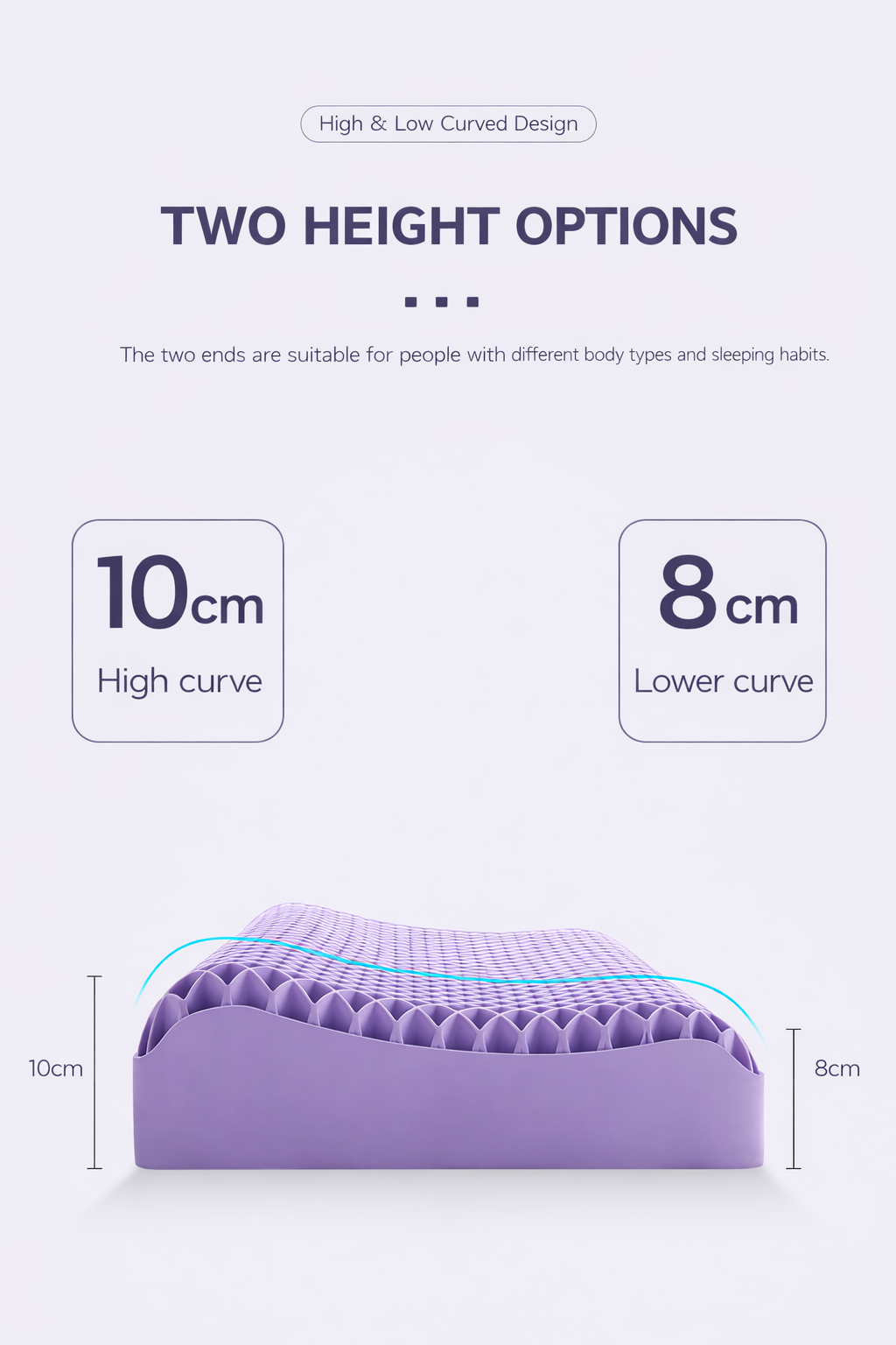 10cm Side: Deep Cervical Support The higher edge is engineered for side sleepers and those who need maximum neck support. This height fills the gap between your shoulder and head, keeping your spine perfectly aligned throughout the night.