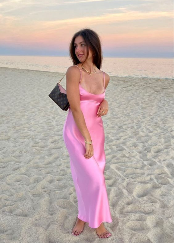 Slip Maxi Éclat Rose – une silhouette sensuelle et épurée qui souligne les courbes avec délicatesse. Son décolleté carré à fines bretelles met en valeur les épaules, tandis que la coupe longue et ajustée allonge la ligne pour un effet glamour instantané.