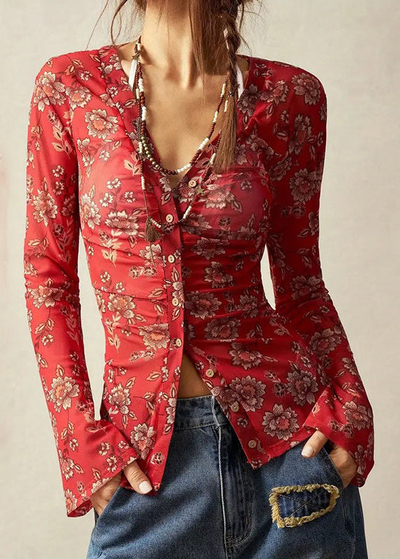 Restez à la pointe de la mode avec cette blouse fleurie à boutons au style raffiné et féminin. Conçue pour un look contemporain, elle séduit par son décolleté en V flatteur, ses manches longues élégantes et ses fronces délicates qui subliment la silhouette. Son imprimé floral vibrant ajoute une touche fraîche et lumineuse à chaque tenue.