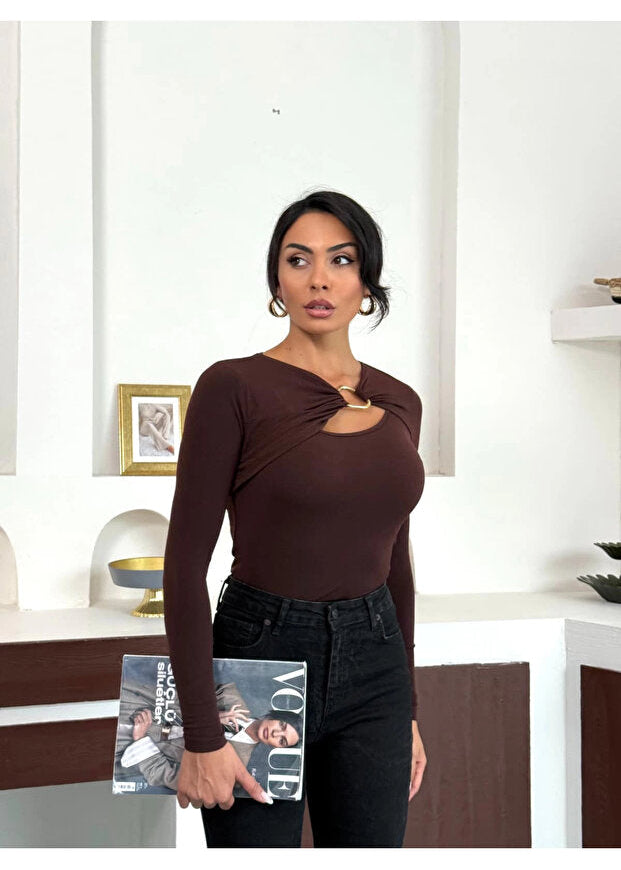 Le Top Élégance Anneau Twist séduit par son design raffiné et sa coupe moderne. Son détail doré à l’encolure ajoute une touche de luxe discret qui sublime votre allure.